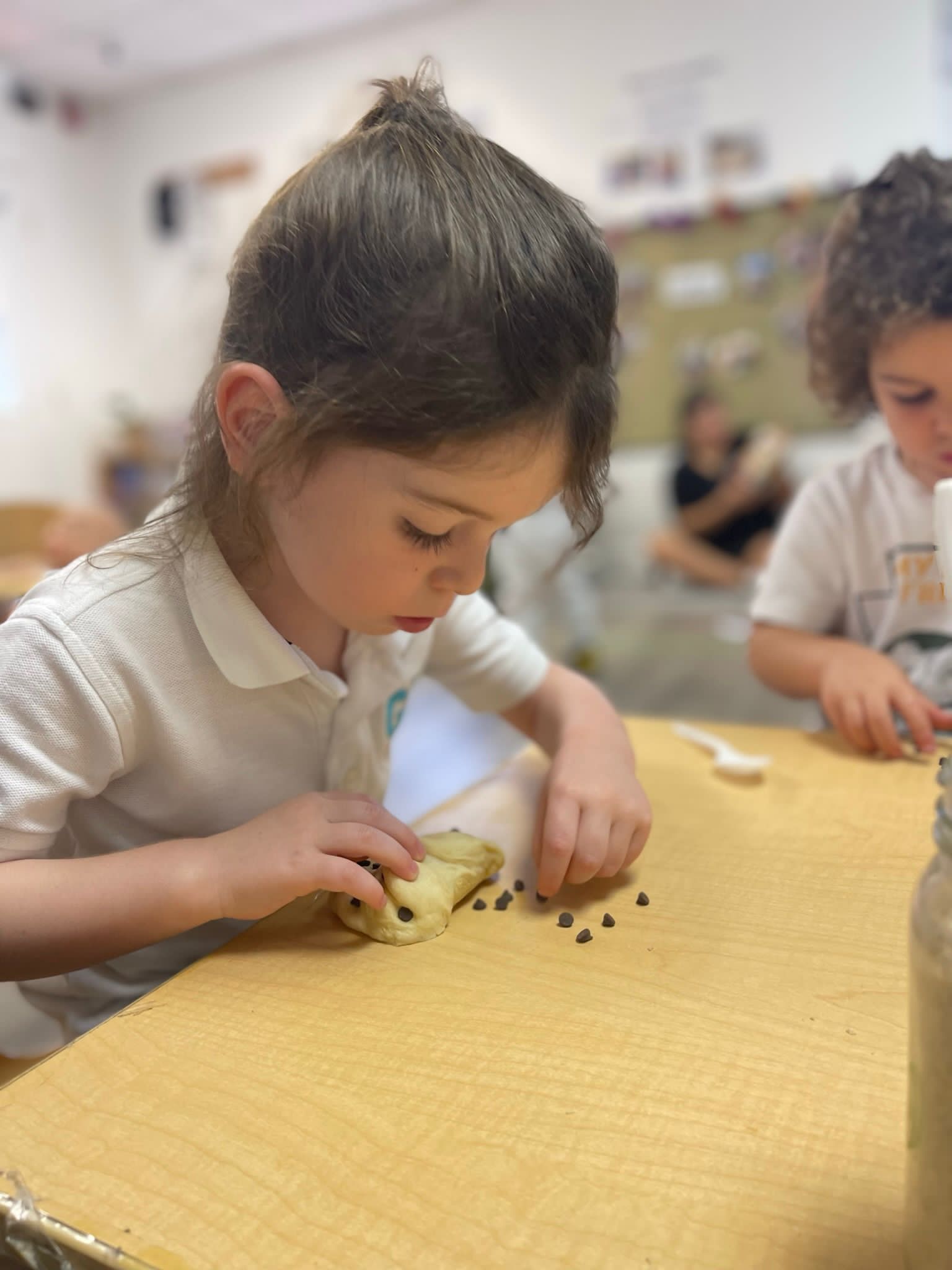 Each Friday, the children have a delightful opportunity to braid Challah dough for Shabbat to bring home freshly baked. This is a highlight of the week and all the children look forward to it!