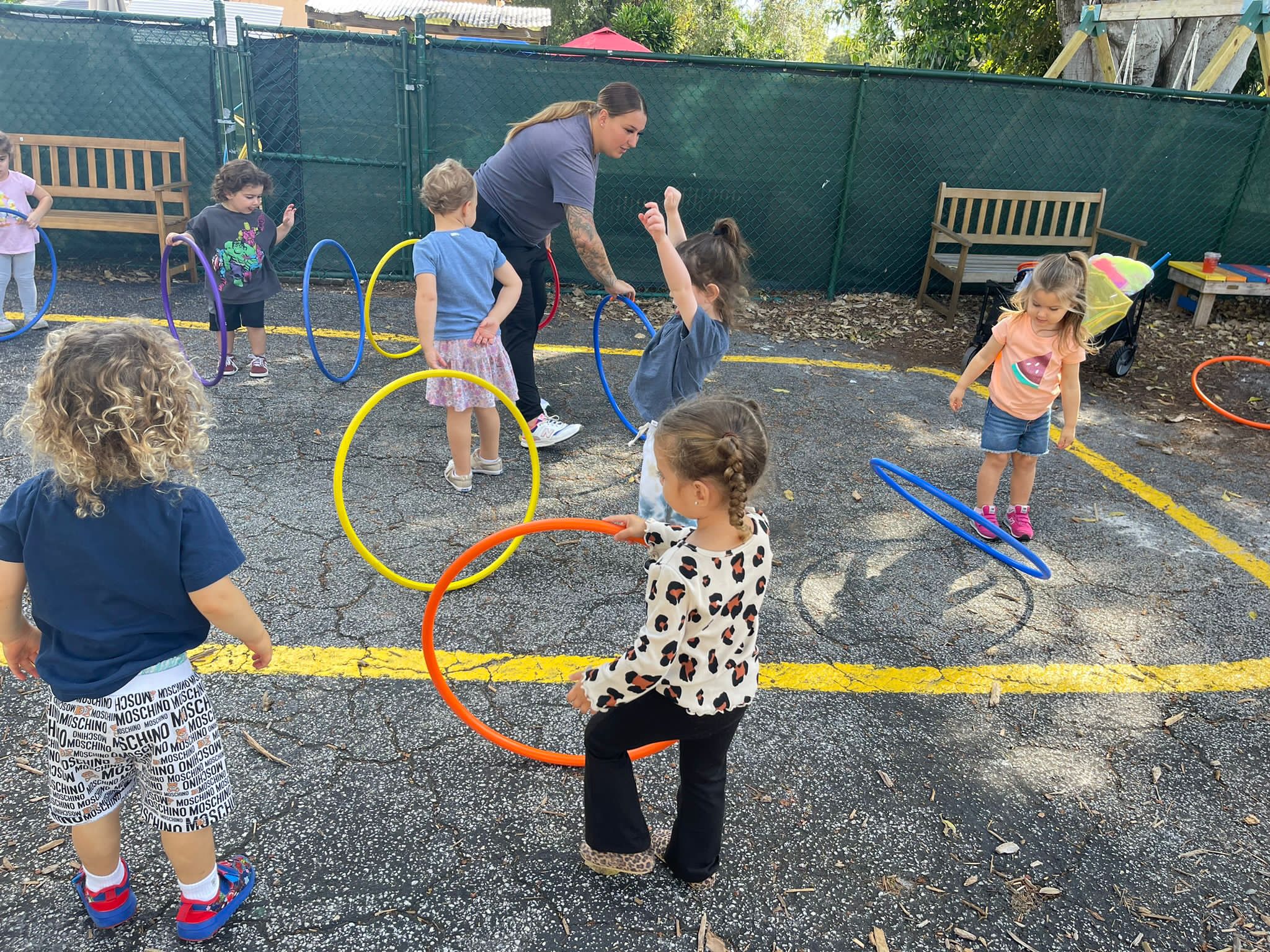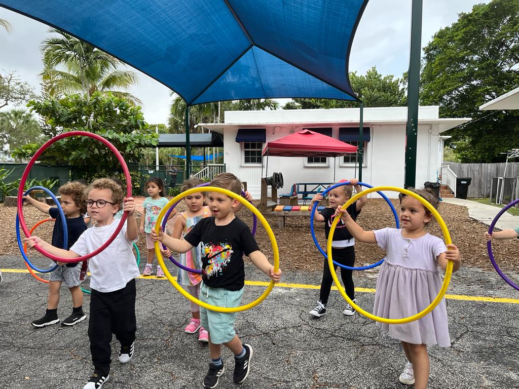 Gross motor play with Kidokinetics’ skilled coaches has been an exhilarating highlight of the past years! In North Miami, children enjoy activities on our spacious sports field in the Gimmel Garden, while in Sunny Isles they make the most of our designated outdoor play areas. When needed, sessions can also be brought indoors to the comfort of the air-conditioned classrooms. Using scoopers, balls, hula hoops, and more, coaches guide the children through 30 minutes of fun group games that build gross-motor development and turn-taking skills. These sessions take place once a week in the mornings.