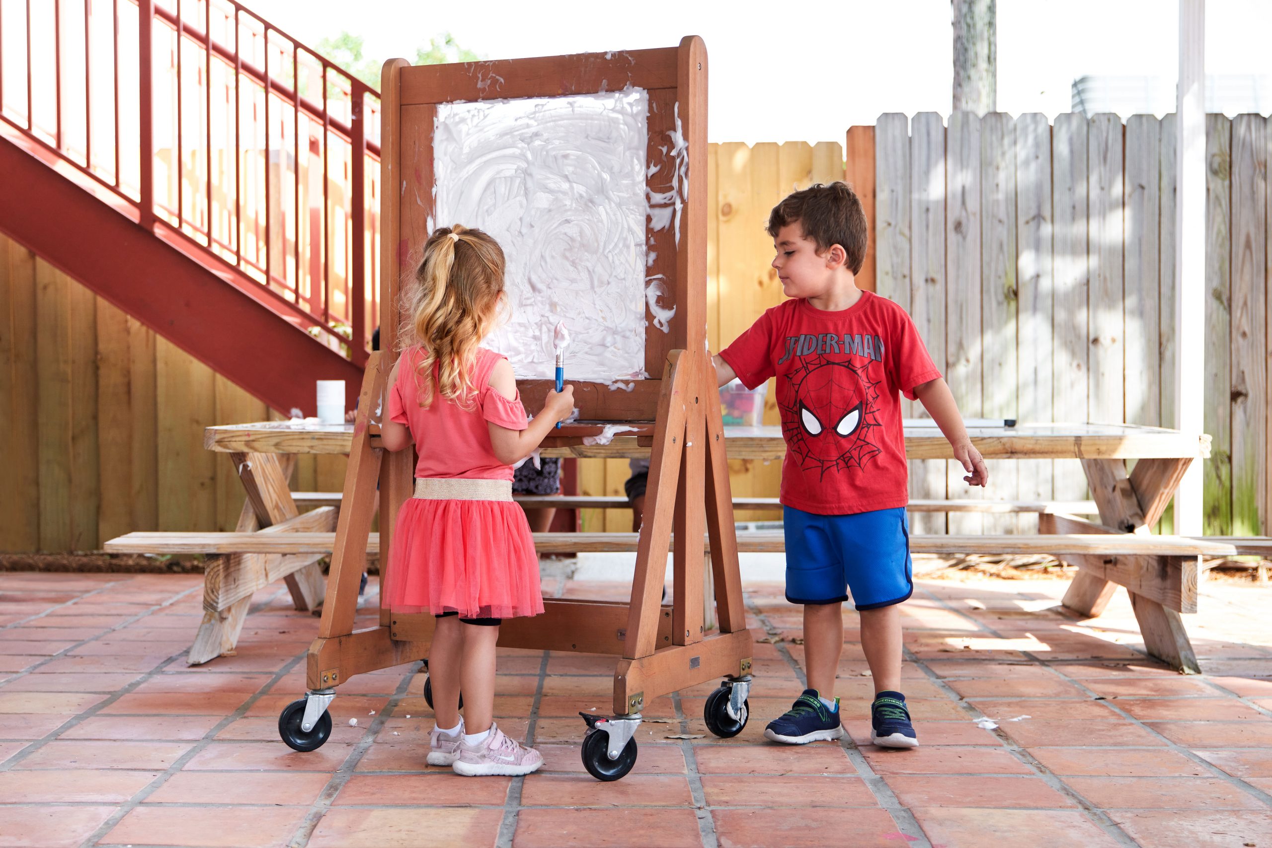 Our Atelierista, art teacher, leads process-based art experiences for the entire school. Children are encouraged to explore a wide variety of materials and textures, while also being introduced to famous artists and their unique techniques. Much of this work happens at the outdoor Exploration Table, where creativity and discovery come alive.